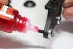 ウイングステーブレースの取り付けネジにはネジロックを使用して、走行時の緩み防止を図っている |